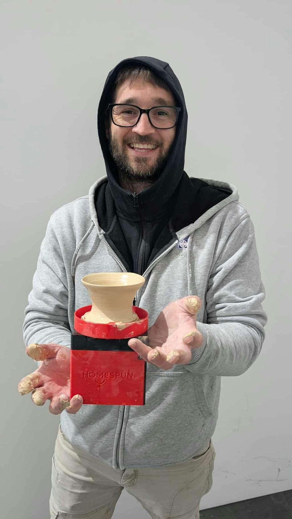 This small but powerful portable pottery wheel with a strong motor for impressive projects. Quick-change bats will keep your creativity flowing. Perfect for pottery on the go!